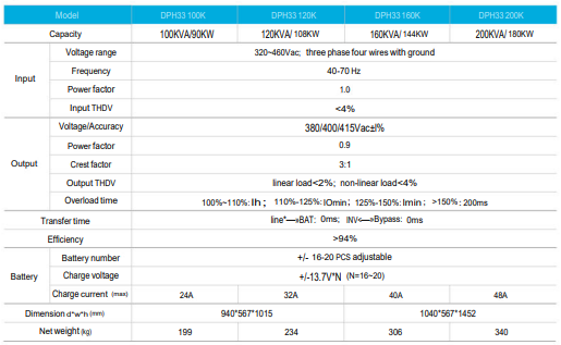 High frequency online three-phase-in/three-phase-out 3/3 100-200K UPS